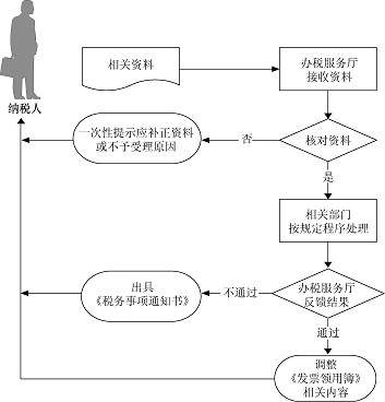 (3)办税服务厅收到反馈后1个工作内通知纳税人调整《发票领用簿》核定内容;未通过的,出具《税务事项通知书》。